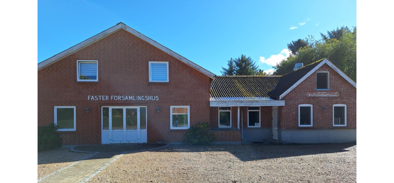 Vores skønne forsamlingshus er centralt beliggende i Faster by