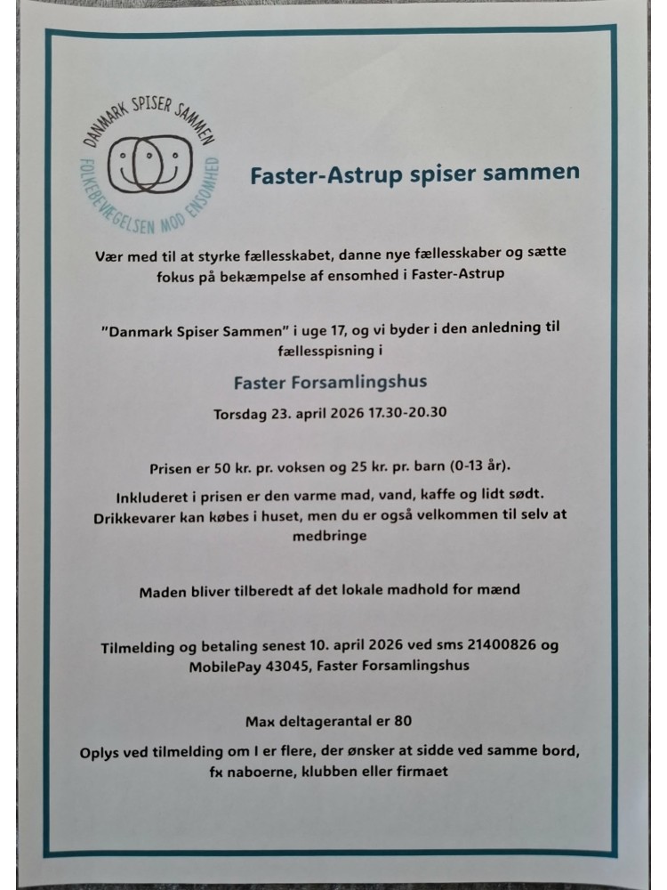 En hyggelig og vellykket fest holdes selvfølgelig i Faster Forsamlingshus.